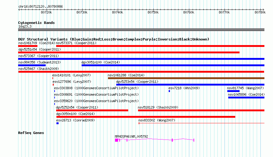Variant DetailsVariant: nsv525467| Internal ID | 15452760 | | Landmark | | | Location Information | | | Cytoband | 16q23.3 | | Allele length | | Assembly | Allele length | | hg38 | 68867 | | hg19 | 68867 | | hg18 | 68867 | | hg17 | 68867 |
