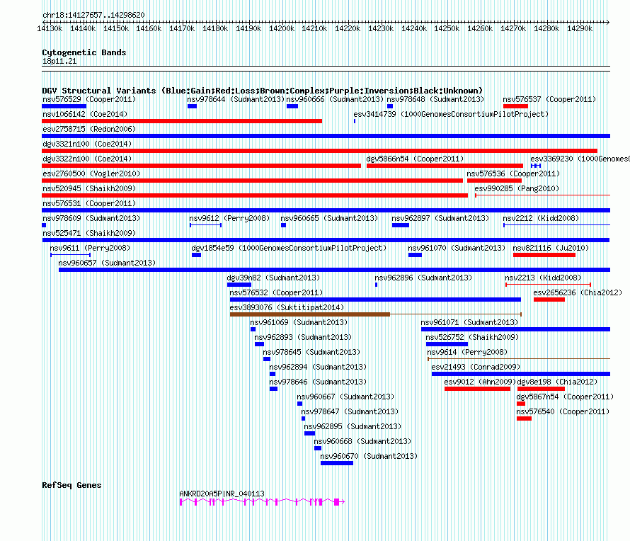 Variant DetailsVariant: nsv525471| Internal ID | 15452764 | | Landmark | | | Location Information | | | Cytoband | 18p11.21 | | Allele length | | Assembly | Allele length | | hg38 | 170964 | | hg19 | 170964 | | hg18 | 170964 | | hg17 | 170964 |