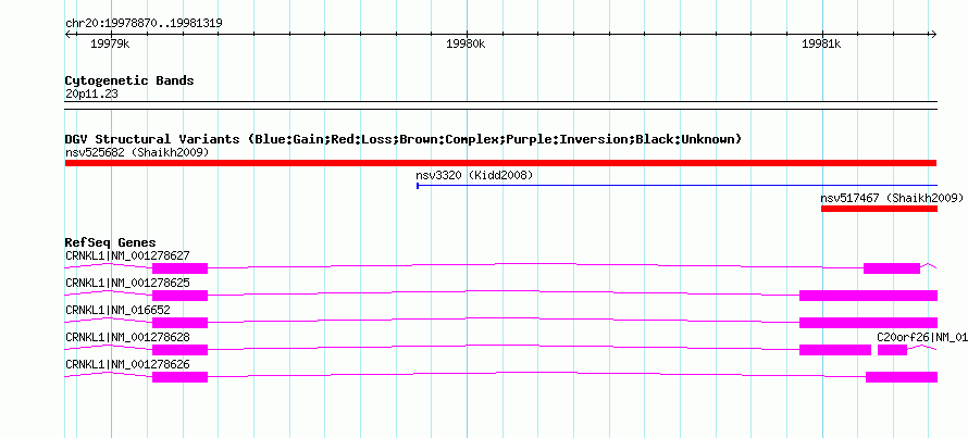 | | Variant Type | CNV loss | | Copy Number | | | Allele State | | | Allele Origin | | | Probe Count | | | Validation Flag | | | Merged Status | M | | Merged Variants | | | Supporting Variants | nssv701840 | | Samples | | | Known Genes | C20orf26, CRNKL1 | | Method | SNP array | | Analysis | Sample-level CNVs | | Platform | GPL6434 | | Comments | | | Reference | Shaikh_et_al_2009 | | Pubmed ID | 19592680 | | Accession Number(s) | nsv525682