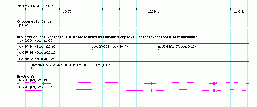Variant DetailsVariant: nsv525898| Internal ID | 15453191 | | Landmark | | | Location Information | | | Cytoband | 1p36.22 | | Allele length | | Assembly | Allele length | | hg38 | 27063 | | hg19 | 27063 | | hg18 | 27063 | | hg17 | 27063 |