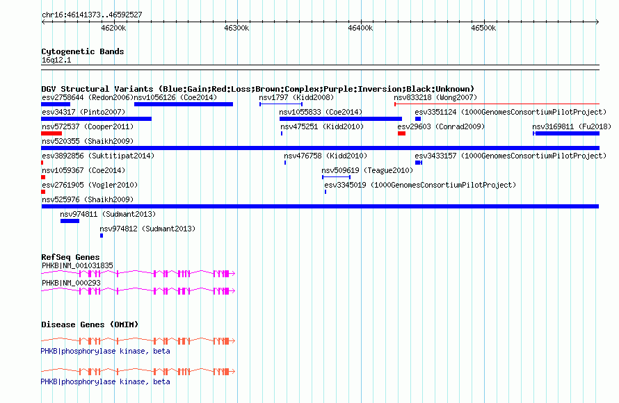 Variant DetailsVariant: nsv525976| Internal ID | 15453269 | | Landmark | | | Location Information | | | Cytoband | 16q12.1 | | Allele length | | Assembly | Allele length | | hg38 | 451155 | | hg19 | 451155 | | hg18 | 451155 | | hg17 | 451155 |