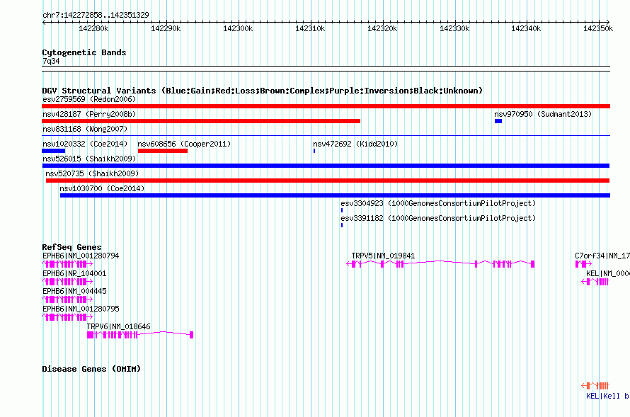 | Variant Type | CNV gain | Copy Number | | Allele State | | Allele Origin | | Probe Count | | Validation Flag | | Merged Status | M | Merged Variants | | Supporting Variants | nssv702243 | Samples | | Known Genes | C7orf34, EPHB6, KEL, TRPV5, TRPV6 | Method | SNP array | Analysis | Sample-level CNVs | Platform | GPL6434 | Comments | | Reference | Shaikh_et_al_2009 | Pubmed ID | 19592680 | Accession Number(s) | nsv526015