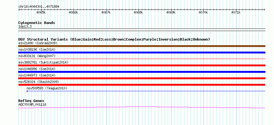 Variant DetailsVariant: nsv526024| Internal ID | 15453317 | | Landmark | | | Location Information | | | Cytoband | 16p13.3 | | Allele length | | Assembly | Allele length | | hg38 | 7584 | | hg19 | 7584 | | hg18 | 7584 | | hg17 | 7584 |