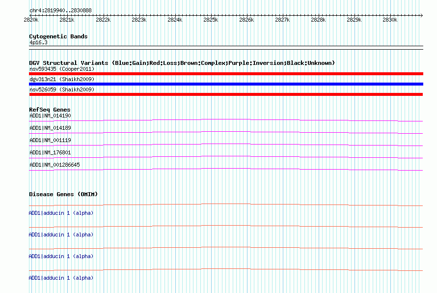 | | Variant Type | CNV loss | | Copy Number | | | Allele State | | | Allele Origin | | | Probe Count | | | Validation Flag | | | Merged Status | M | | Merged Variants | | | Supporting Variants | nssv702297 | | Samples | | | Known Genes | ADD1 | | Method | SNP array | | Analysis | Sample-level CNVs | | Platform | GPL6434 | | Comments | | | Reference | Shaikh_et_al_2009 | | Pubmed ID | 19592680 | | Accession Number(s) | nsv526059