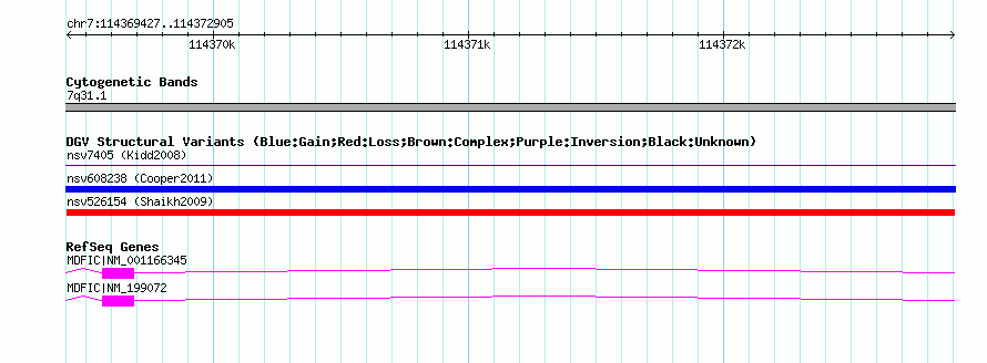 Variant DetailsVariant: nsv526154| Internal ID | 15453447 | | Landmark | | | Location Information | | | Cytoband | 7q31.1 | | Allele length | | Assembly | Allele length | | hg38 | 3479 | | hg19 | 3479 | | hg18 | 3479 | | hg17 | 3479 |