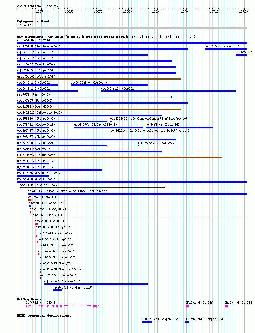 Variant DetailsVariant: nsv526168| Internal ID | 15106775 | | Landmark | | | Location Information | | | Cytoband | 19p13.12 | | Allele length | | Assembly | Allele length | | hg38 | 78966 | | hg19 | 78966 | | hg18 | 78966 | | hg17 | 78966 |