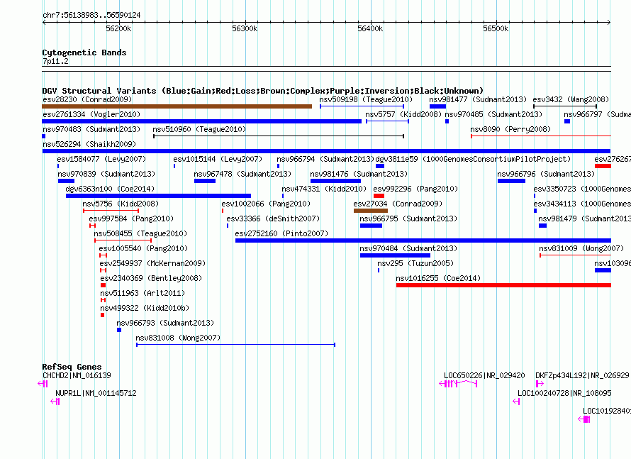 Variant DetailsVariant: nsv526294| Internal ID | 15453587 | | Landmark | | | Location Information | | | Cytoband | 7p11.2 | | Allele length | | Assembly | Allele length | | hg38 | 451142 | | hg19 | 451142 | | hg18 | 451142 | | hg17 | 451142 |