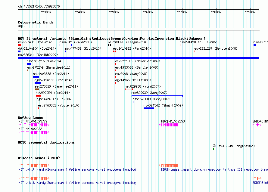 Variant DetailsVariant: nsv526344| Internal ID | 15106951 | | Landmark | | | Location Information | | | Cytoband | 4q12 | | Allele length | | Assembly | Allele length | | hg38 | 708632 | | hg19 | 708632 | | hg18 | 708632 | | hg17 | 708632 |