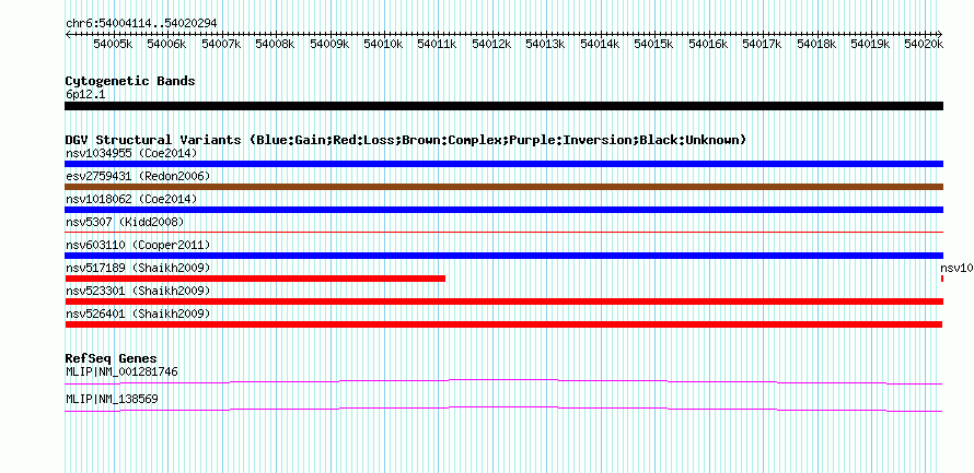 | | Variant Type | CNV loss | | Copy Number | | | Allele State | | | Allele Origin | | | Probe Count | | | Validation Flag | | | Merged Status | M | | Merged Variants | | | Supporting Variants | nssv702700 | | Samples | | | Known Genes | MLIP | | Method | SNP array | | Analysis | Sample-level CNVs | | Platform | GPL6434 | | Comments | | | Reference | Shaikh_et_al_2009 | | Pubmed ID | 19592680 | | Accession Number(s) | nsv526401