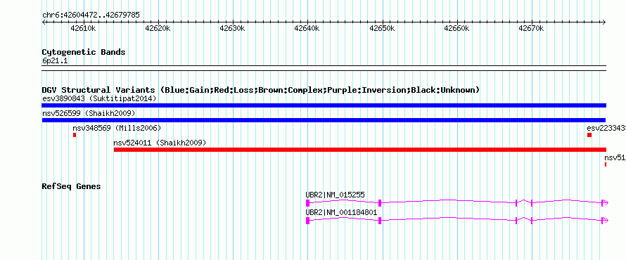 Variant DetailsVariant: nsv526599| Internal ID | 15453892 | | Landmark | | | Location Information | | | Cytoband | 6p21.1 | | Allele length | | Assembly | Allele length | | hg38 | 75314 | | hg19 | 75314 | | hg18 | 75314 | | hg17 | 75314 |