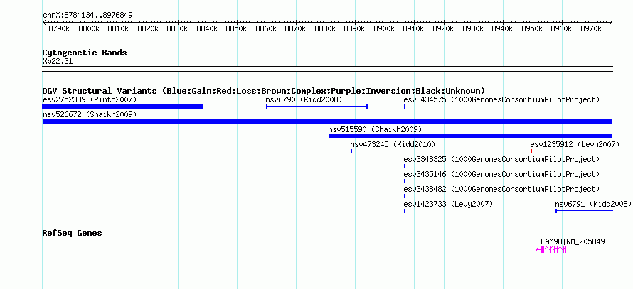 Variant DetailsVariant: nsv526672| Internal ID | 15453965 | | Landmark | | | Location Information | | | Cytoband | Xp22.31 | | Allele length | | Assembly | Allele length | | hg38 | 192716 | | hg19 | 192716 | | hg18 | 192716 | | hg17 | 192716 |