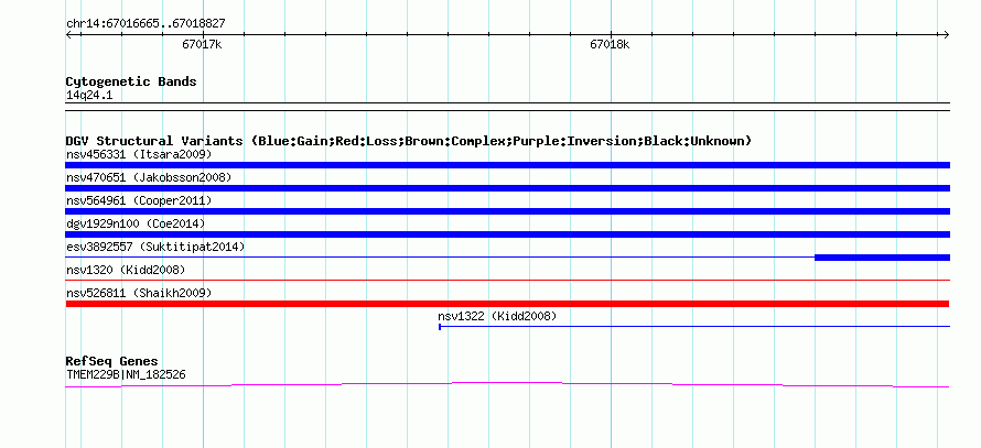 Variant DetailsVariant: nsv526811| Internal ID | 15107418 | | Landmark | | | Location Information | | | Cytoband | 14q24.1 | | Allele length | | Assembly | Allele length | | hg38 | 2163 | | hg19 | 2163 | | hg18 | 2163 | | hg17 | 2163 |