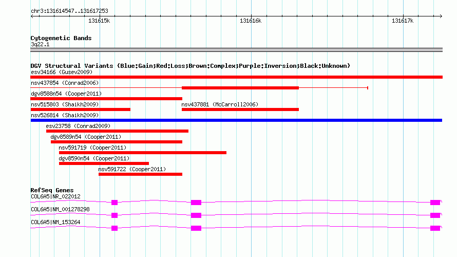 Variant DetailsVariant: nsv526814| Internal ID | 15454107 | | Landmark | | | Location Information | | | Cytoband | 3q22.1 | | Allele length | | Assembly | Allele length | | hg38 | 2707 | | hg19 | 2707 | | hg18 | 2707 | | hg17 | 2707 |