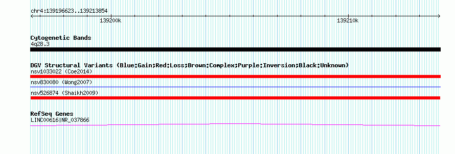 Variant DetailsVariant: nsv526874| Internal ID | 15454167 | | Landmark | | | Location Information | | | Cytoband | 4q28.3 | | Allele length | | Assembly | Allele length | | hg38 | 17232 | | hg19 | 17232 | | hg18 | 17232 | | hg17 | 17232 |