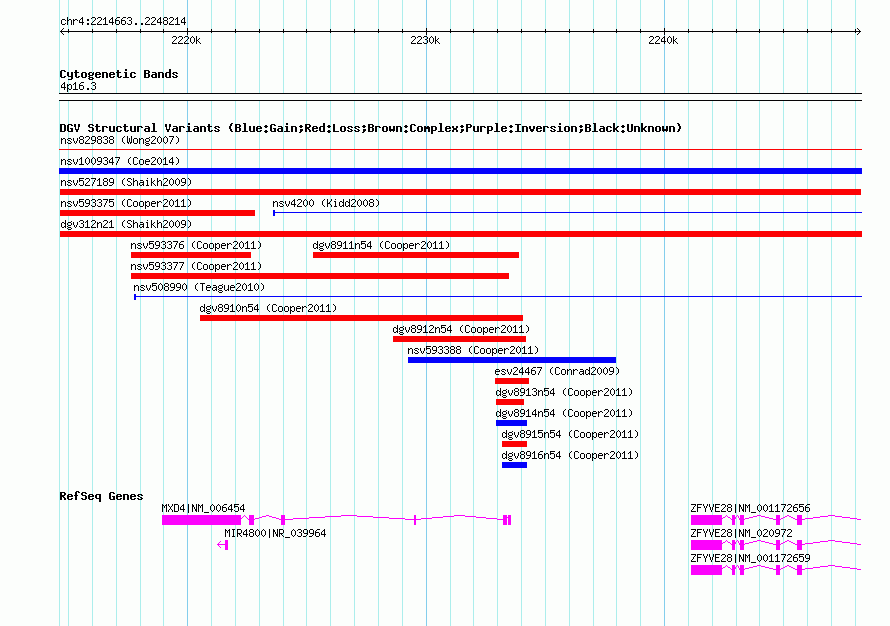 | | Variant Type | CNV loss | | Copy Number | | | Allele State | | | Allele Origin | | | Probe Count | | | Validation Flag | | | Merged Status | M | | Merged Variants | | | Supporting Variants | nssv703586 | | Samples | | | Known Genes | MIR4800, MXD4, ZFYVE28 | | Method | SNP array | | Analysis | Sample-level CNVs | | Platform | GPL6434 | | Comments | | | Reference | Shaikh_et_al_2009 | | Pubmed ID | 19592680 | | Accession Number(s) | nsv527189
