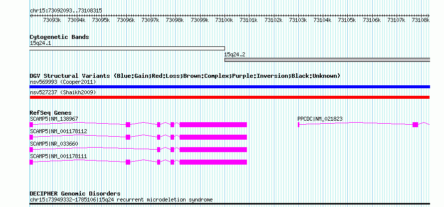 | | Variant Type | CNV loss | | Copy Number | | | Allele State | | | Allele Origin | | | Probe Count | | | Validation Flag | | | Merged Status | M | | Merged Variants | | | Supporting Variants | nssv703637 | | Samples | | | Known Genes | PPCDC, SCAMP5 | | Method | SNP array | | Analysis | Sample-level CNVs | | Platform | GPL6434 | | Comments | | | Reference | Shaikh_et_al_2009 | | Pubmed ID | 19592680 | | Accession Number(s) | nsv527237