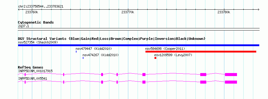 Variant DetailsVariant: nsv527354| Internal ID | 15454647 | | Landmark | | | Location Information | | | Cytoband | 2q37.1 | | Allele length | | Assembly | Allele length | | hg38 | 25078 | | hg19 | 25078 | | hg18 | 25078 | | hg17 | 25078 |