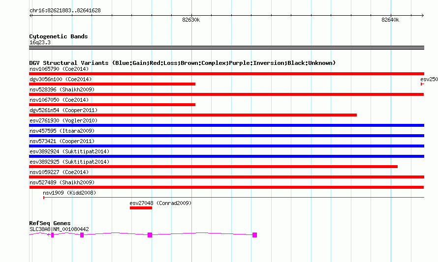 Variant DetailsVariant: nsv527489| Internal ID | 15454782 | | Landmark | | | Location Information | | | Cytoband | 16q23.3 | | Allele length | | Assembly | Allele length | | hg38 | 19746 | | hg19 | 19746 | | hg18 | 19746 | | hg17 | 19746 |