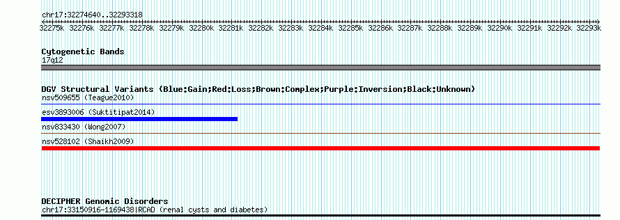 Variant DetailsVariant: nsv528102Internal ID | 15108709 | Landmark | | Location Information | | Cytoband | 17q12 | Allele length | Assembly | Allele length | hg38 | 18682 | hg19 | 18679 | hg18 | 18679 | hg17 | 18679 |