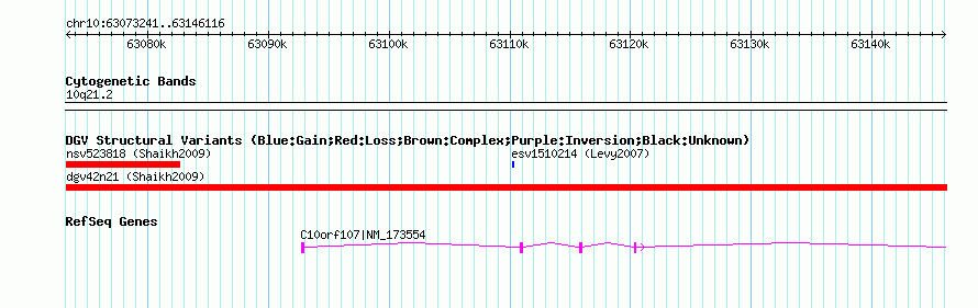 Variant DetailsVariant: nsv528134| Internal ID | 15108741 | | Landmark | | | Location Information | | | Cytoband | 10q21.2 | | Allele length | | Assembly | Allele length | | hg38 | 72876 | | hg19 | 72876 | | hg18 | 72876 | | hg17 | 72876 |