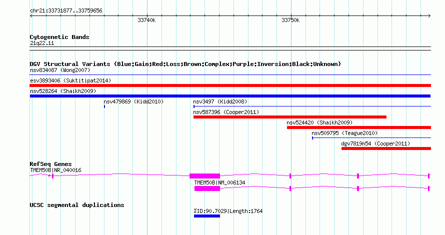 Variant DetailsVariant: nsv528264| Internal ID | 15108871 | | Landmark | | | Location Information | | | Cytoband | 21q22.11 | | Allele length | | Assembly | Allele length | | hg38 | 27780 | | hg19 | 27780 | | hg18 | 27780 | | hg17 | 27780 |