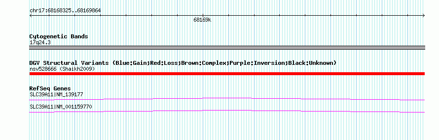 Variant DetailsVariant: nsv528666| Internal ID | 15455959 | | Landmark | | | Location Information | | | Cytoband | 17q24.3 | | Allele length | | Assembly | Allele length | | hg38 | 1540 | | hg19 | 1540 | | hg18 | 1540 | | hg17 | 1540 |