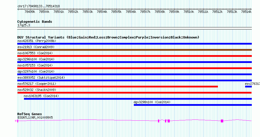 | | Variant Type | CNV loss | | Copy Number | | | Allele State | | | Allele Origin | | | Probe Count | | | Validation Flag | | | Merged Status | M | | Merged Variants | | | Supporting Variants | nssv705743 | | Samples | | | Known Genes | B3GNTL1 | | Method | SNP array | | Analysis | Sample-level CNVs | | Platform | GPL6434 | | Comments | | | Reference | Shaikh_et_al_2009 | | Pubmed ID | 19592680 | | Accession Number(s) | nsv529032