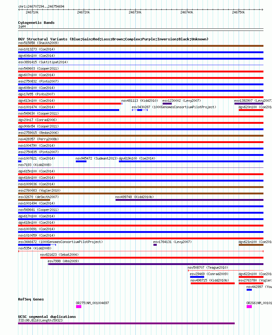 Variant DetailsVariant: nsv5354| Internal ID | 15203469 | | Landmark | | | Location Information | | | Cytoband | 1q44 | | Allele length | | Assembly | Allele length | | hg38 | 47401 | | hg19 | 47401 | | hg18 | 47401 | | hg17 | 47401 |