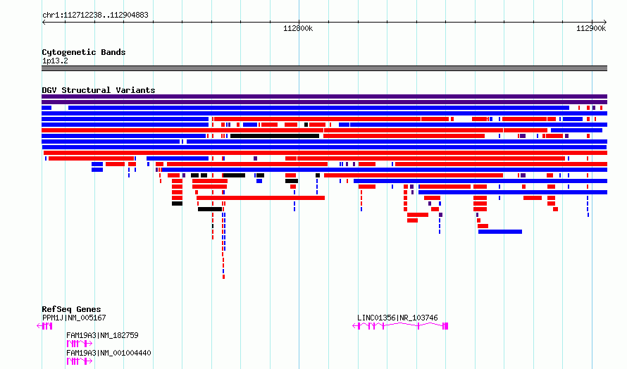 Variant DetailsVariant: nsv5425670| Internal ID | 204627 | | Landmark | | | Location Information | | | Cytoband | 1p13.2 | | Allele length | | Assembly | Allele length | | hg38 | 192646 | | hg19 | 192646 |