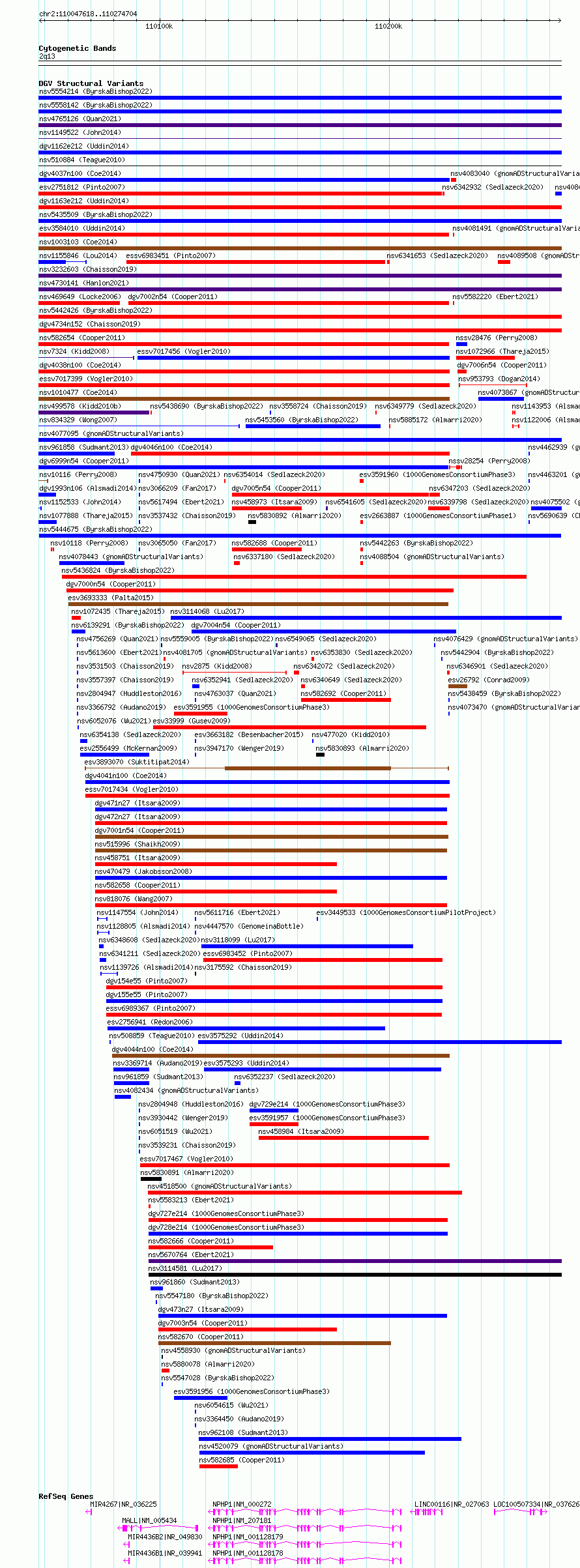 Variant DetailsVariant: nsv5444675| Internal ID | 223046 | | Landmark | | | Location Information | | | Cytoband | 2q13 | | Allele length | | Assembly | Allele length | | hg38 | 227087 | | hg19 | 227087 |