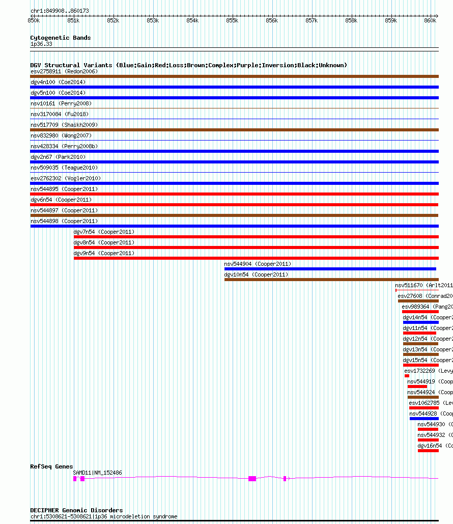 Variant DetailsVariant: nsv544897| Internal ID | 16332306 | | Landmark | | | Location Information | | | Cytoband | 1p36.33 | | Allele length | | Assembly | Allele length | | hg38 | 10266 | | hg19 | 10266 | | hg18 | 10266 |