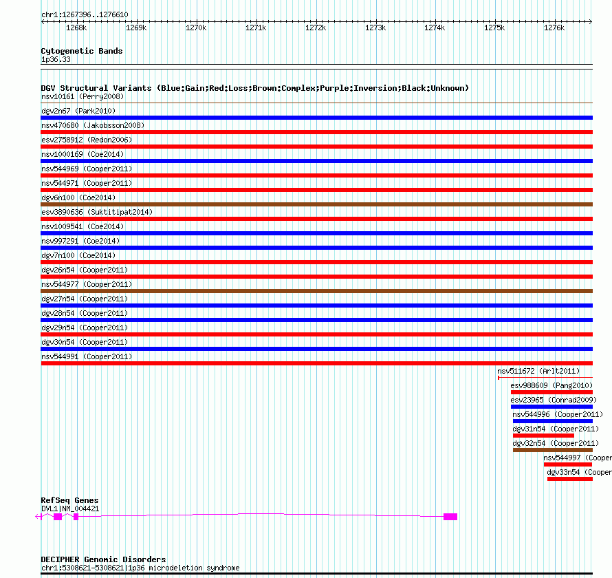 Variant DetailsVariant: nsv544989| Internal ID | 15985712 | | Landmark | | | Location Information | | | Cytoband | 1p36.33 | | Allele length | | Assembly | Allele length | | hg38 | 9215 | | hg19 | 9215 | | hg18 | 9215 |