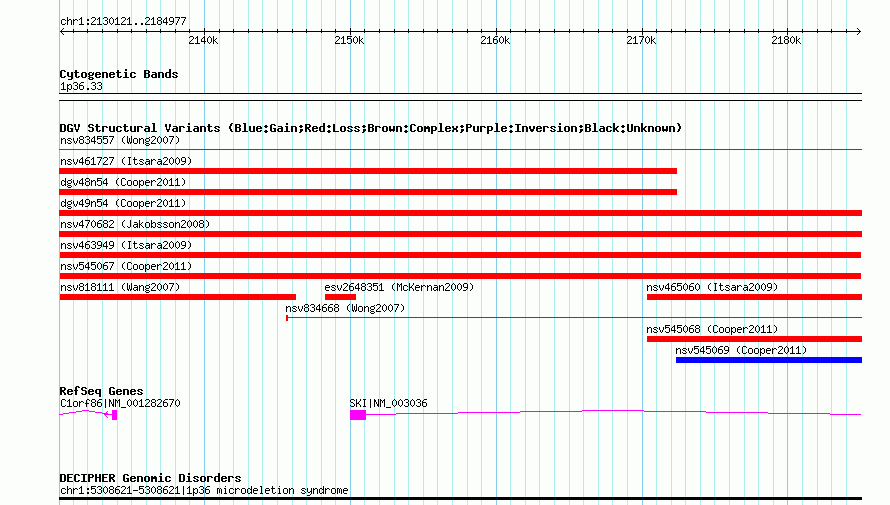 | | Variant Type | CNV loss | | Copy Number | | | Allele State | | | Allele Origin | | | Probe Count | | | Validation Flag | | | Merged Status | M | | Merged Variants | | | Supporting Variants | nssv1172580 | | Samples | 1780862414_A | | Known Genes | C1orf86, SKI | | Method | SNP array | | Analysis | Illumina SNP array copy number analysis | | Platform | Not reported | | Comments | | | Reference | Cooper_et_al_2011 | | Pubmed ID | 21841781 | | Accession Number(s) | nsv545067