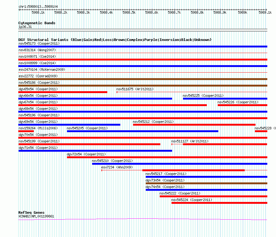 Variant DetailsVariant: nsv545201| Internal ID | 16332610 | | Landmark | | | Location Information | | | Cytoband | 1p36.31 | | Allele length | | Assembly | Allele length | | hg38 | 1092 | | hg19 | 1092 | | hg18 | 1092 |