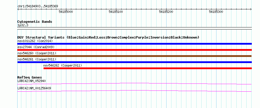 Variant DetailsVariant: nsv546260| Internal ID | 15986983 | | Landmark | | | Location Information | | | Cytoband | 1p32.3 | | Allele length | | Assembly | Allele length | | hg38 | 467 | | hg19 | 467 | | hg18 | 467 |