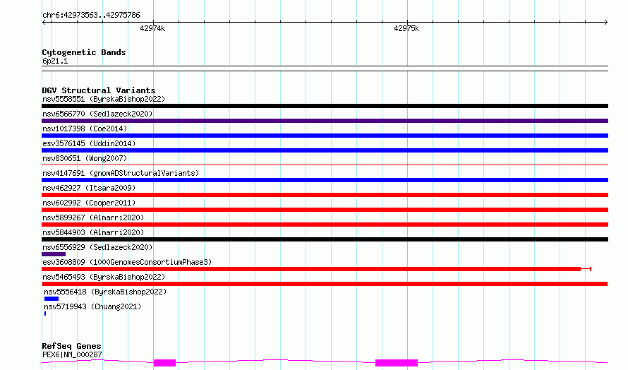 Variant DetailsVariant: nsv5465493| Internal ID | 243357 | | Landmark | | | Location Information | | | Cytoband | 6p21.1 | | Allele length | | Assembly | Allele length | | hg38 | 2224 | | hg19 | 2224 |
