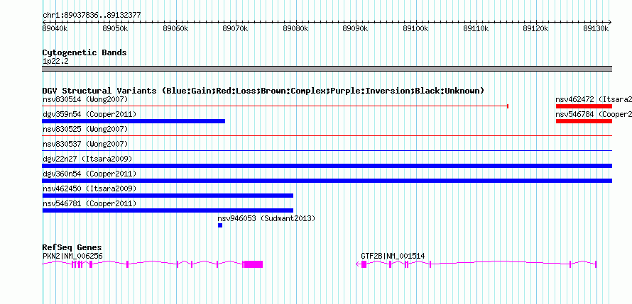 Variant DetailsVariant: nsv546782| Internal ID | 16334191 | | Landmark | | | Location Information | | | Cytoband | 1p22.2 | | Allele length | | Assembly | Allele length | | hg38 | 94542 | | hg19 | 94542 | | hg18 | 94542 |