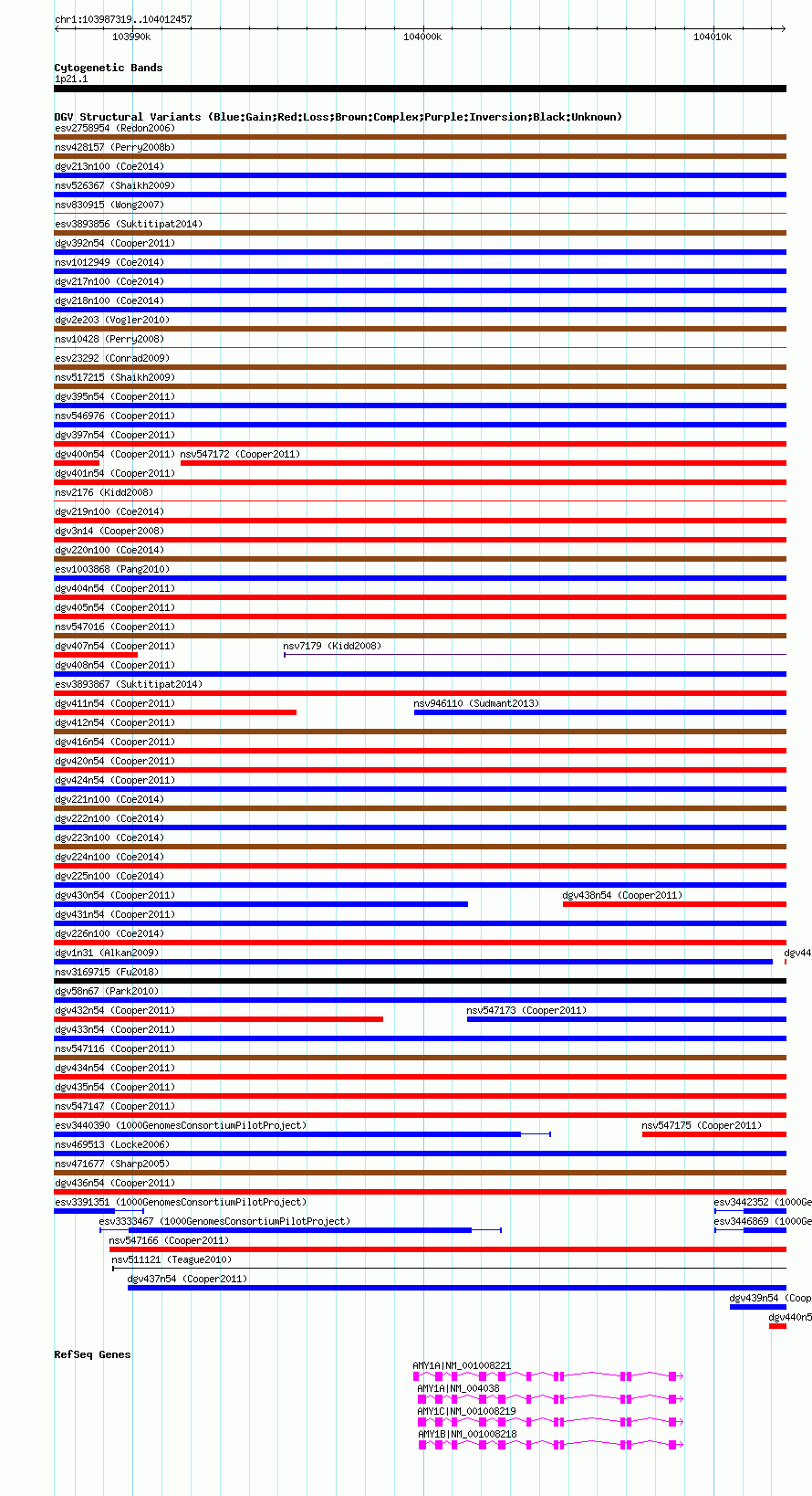 Variant DetailsVariant: nsv547164| Internal ID | 16334573 | | Landmark | | | Location Information | | | Cytoband | 1p21.1 | | Allele length | | Assembly | Allele length | | hg38 | 25139 | | hg19 | 25139 | | hg18 | 25139 |