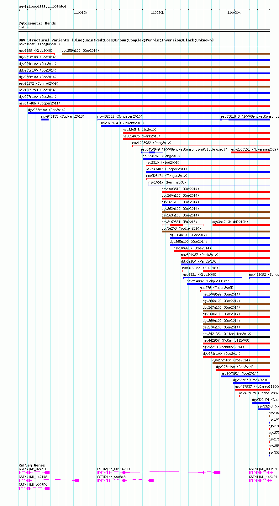 Variant DetailsVariant: nsv547486| Internal ID | 16334895 | | Landmark | | | Location Information | | | Cytoband | 1p13.3 | | Allele length | | Assembly | Allele length | | hg38 | 32722 | | hg19 | 32722 | | hg18 | 32722 |