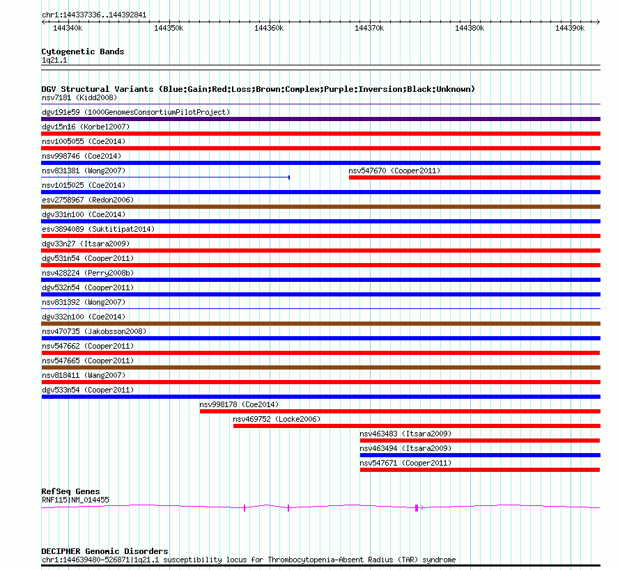 | Known Genes | LOC100288142, NBPF10, RNF115 |