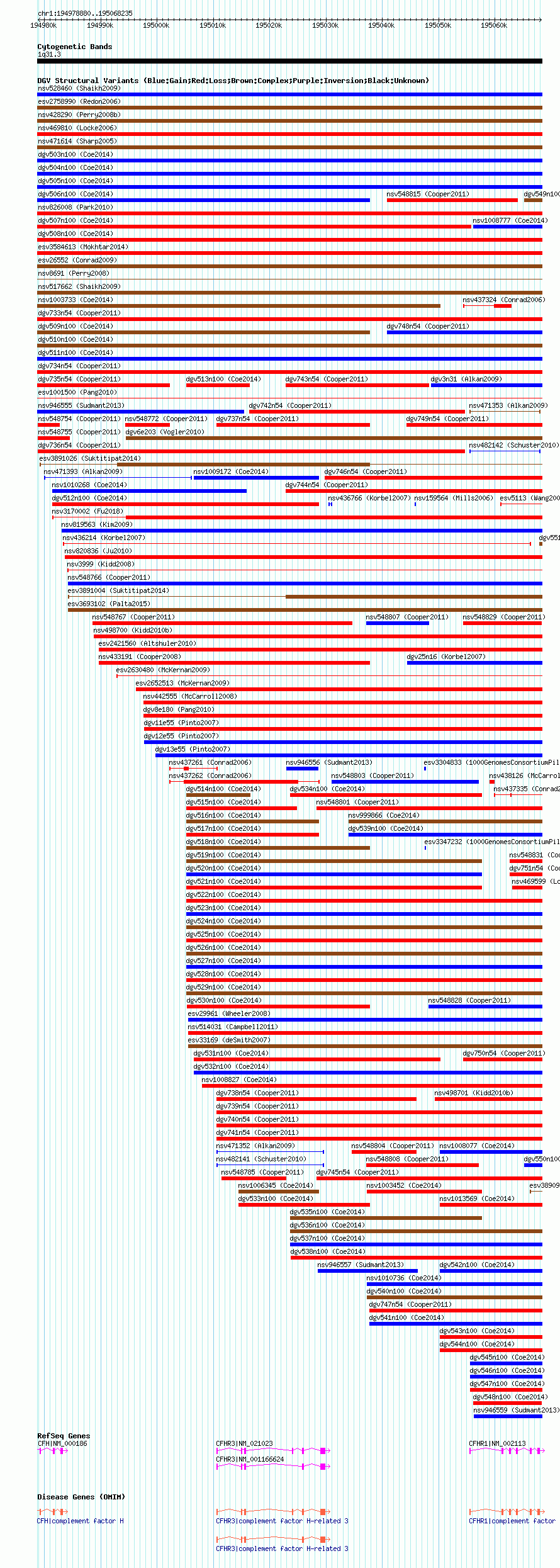 Variant DetailsVariant: nsv548761| Internal ID | 16336170 | | Landmark | | | Location Information | | | Cytoband | 1q31.3 | | Allele length | | Assembly | Allele length | | hg38 | 89356 | | hg19 | 89356 | | hg18 | 89356 |