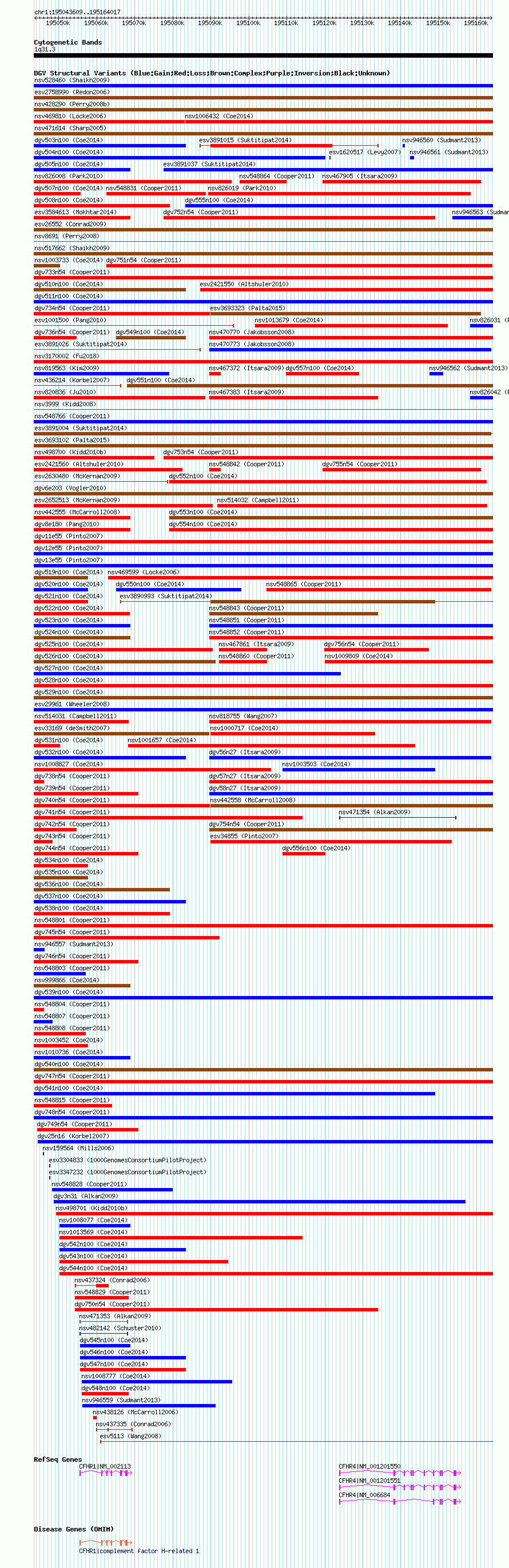 | | Variant Type | CNV loss | | Copy Number | | | Allele State | | | Allele Origin | | | Probe Count | | | Validation Flag | | | Merged Status | M | | Merged Variants | dgv747n54 | | Supporting Variants | nssv734033 | | Samples | | | Known Genes | CFHR1, CFHR4 | | Method | SNP array | | Analysis | Illumina SNP array copy number analysis | | Platform | Not reported | | Comments | | | Reference | Cooper_et_al_2011 | | Pubmed ID | 21841781 | | Accession Number(s) | nsv548817