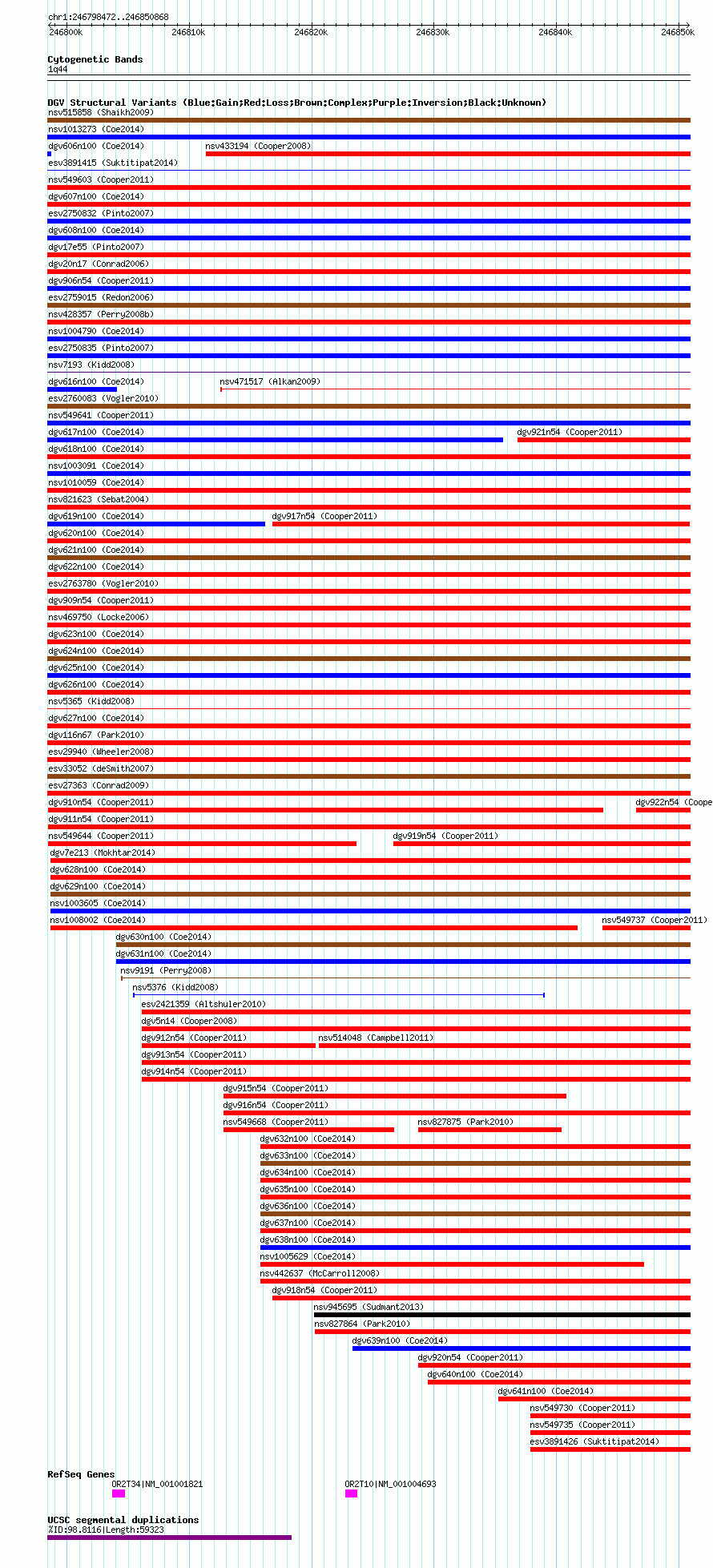 Variant DetailsVariant: nsv549647| Internal ID | 15990370 | | Landmark | | | Location Information | | | Cytoband | 1q44 | | Allele length | | Assembly | Allele length | | hg38 | 52397 | | hg19 | 52397 | | hg18 | 52397 |