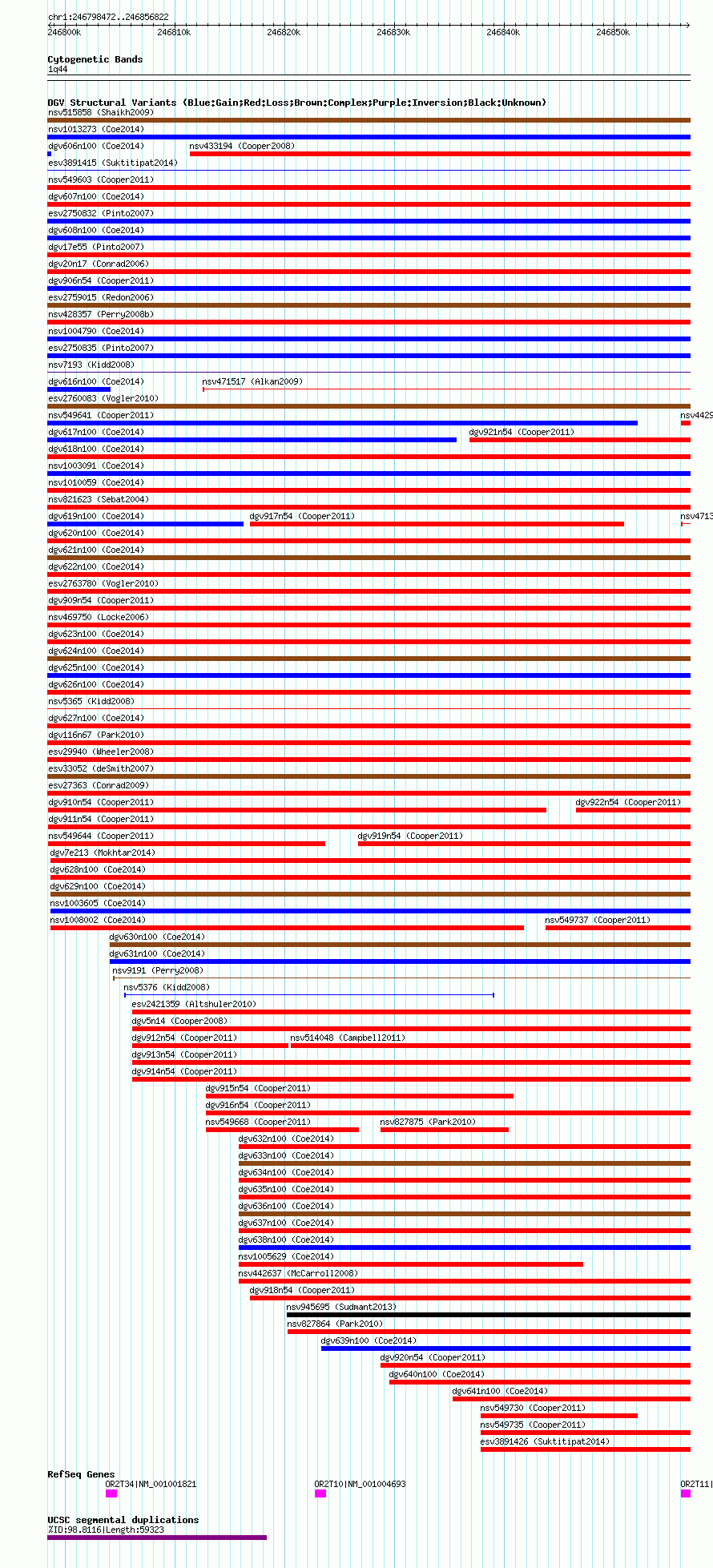 Variant DetailsVariant: nsv549648| Internal ID | 15990371 | | Landmark | | | Location Information | | | Cytoband | 1q44 | | Allele length | | Assembly | Allele length | | hg38 | 58351 | | hg19 | 58351 | | hg18 | 58351 |