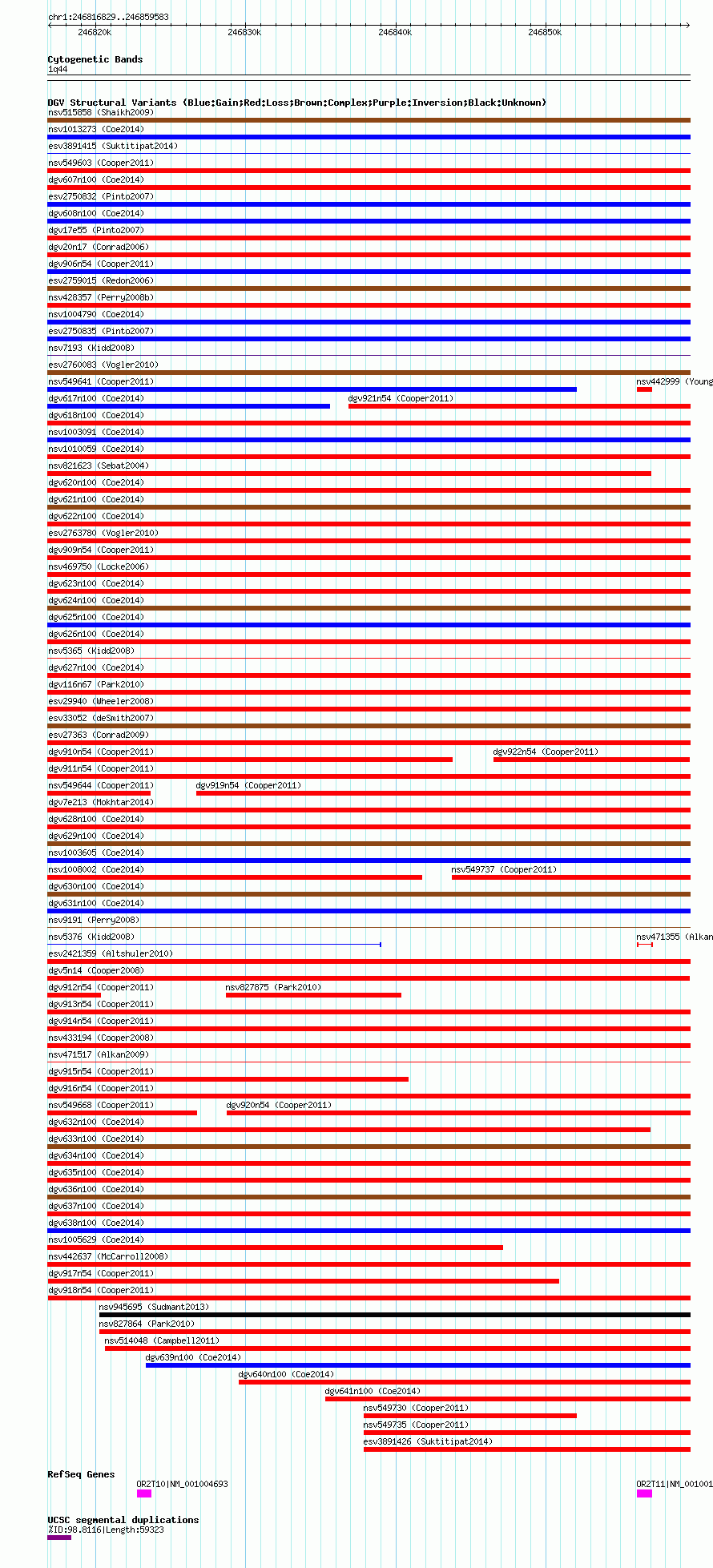 Variant DetailsVariant: nsv549690| Internal ID | 15990413 | | Landmark | | | Location Information | | | Cytoband | 1q44 | | Allele length | | Assembly | Allele length | | hg38 | 42755 | | hg19 | 42755 | | hg18 | 42755 |