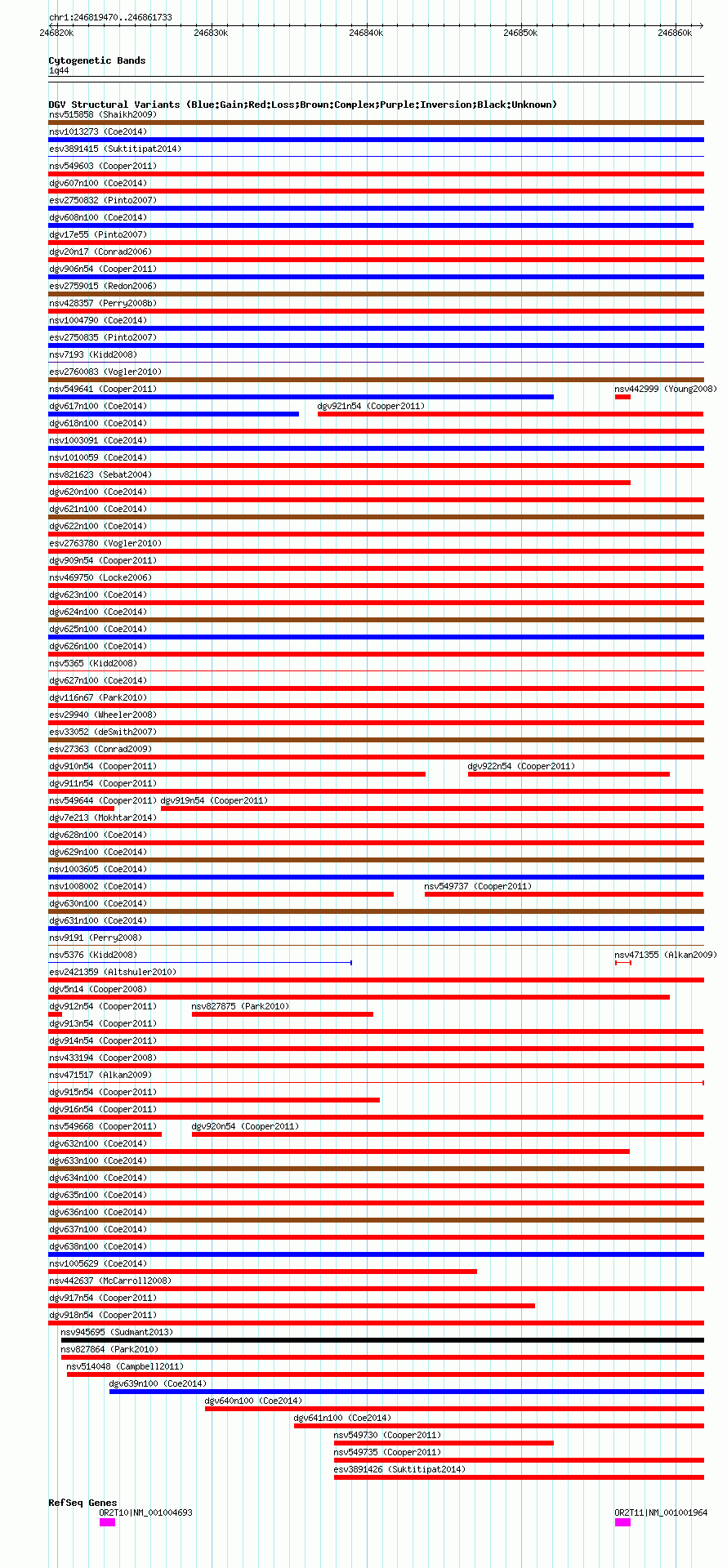 Variant DetailsVariant: nsv549717| Internal ID | 15990440 | | Landmark | | | Location Information | | | Cytoband | 1q44 | | Allele length | | Assembly | Allele length | | hg38 | 42264 | | hg19 | 42264 | | hg18 | 42264 |