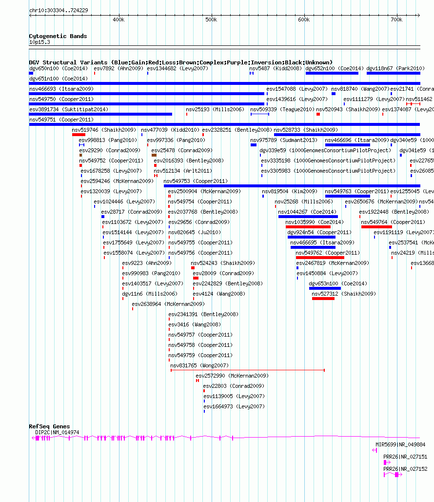 Variant DetailsVariant: nsv549751| Internal ID | 16337160 | | Landmark | | | Location Information | | | Cytoband | 10p15.3 | | Allele length | | Assembly | Allele length | | hg38 | 420926 | | hg19 | 420926 | | hg18 | 420926 |