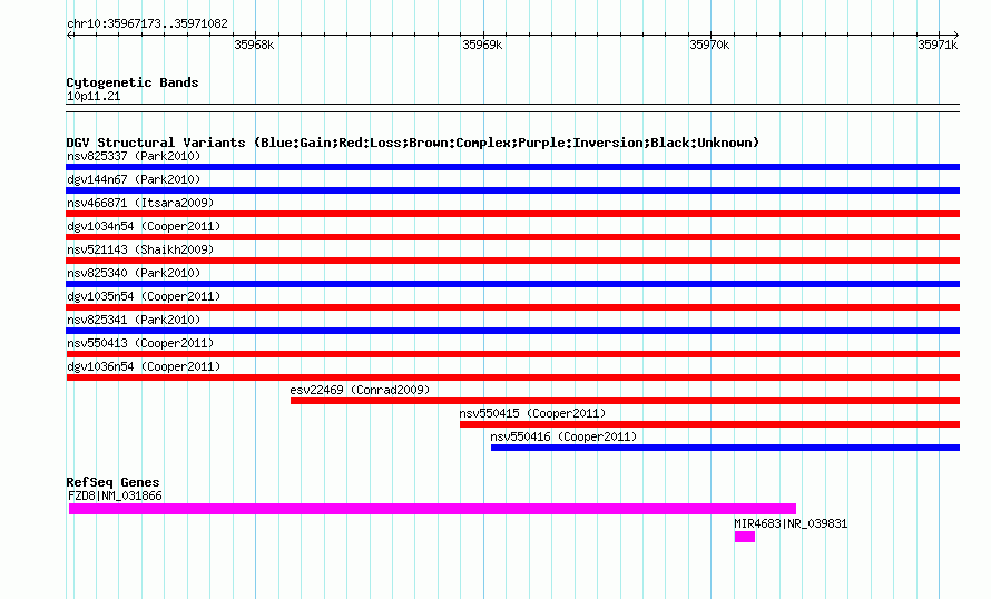 Variant DetailsVariant: nsv550411| Internal ID | 15991134 | | Landmark | | | Location Information | | | Cytoband | 10p11.21 | | Allele length | | Assembly | Allele length | | hg38 | 3910 | | hg19 | 3910 | | hg18 | 3910 |