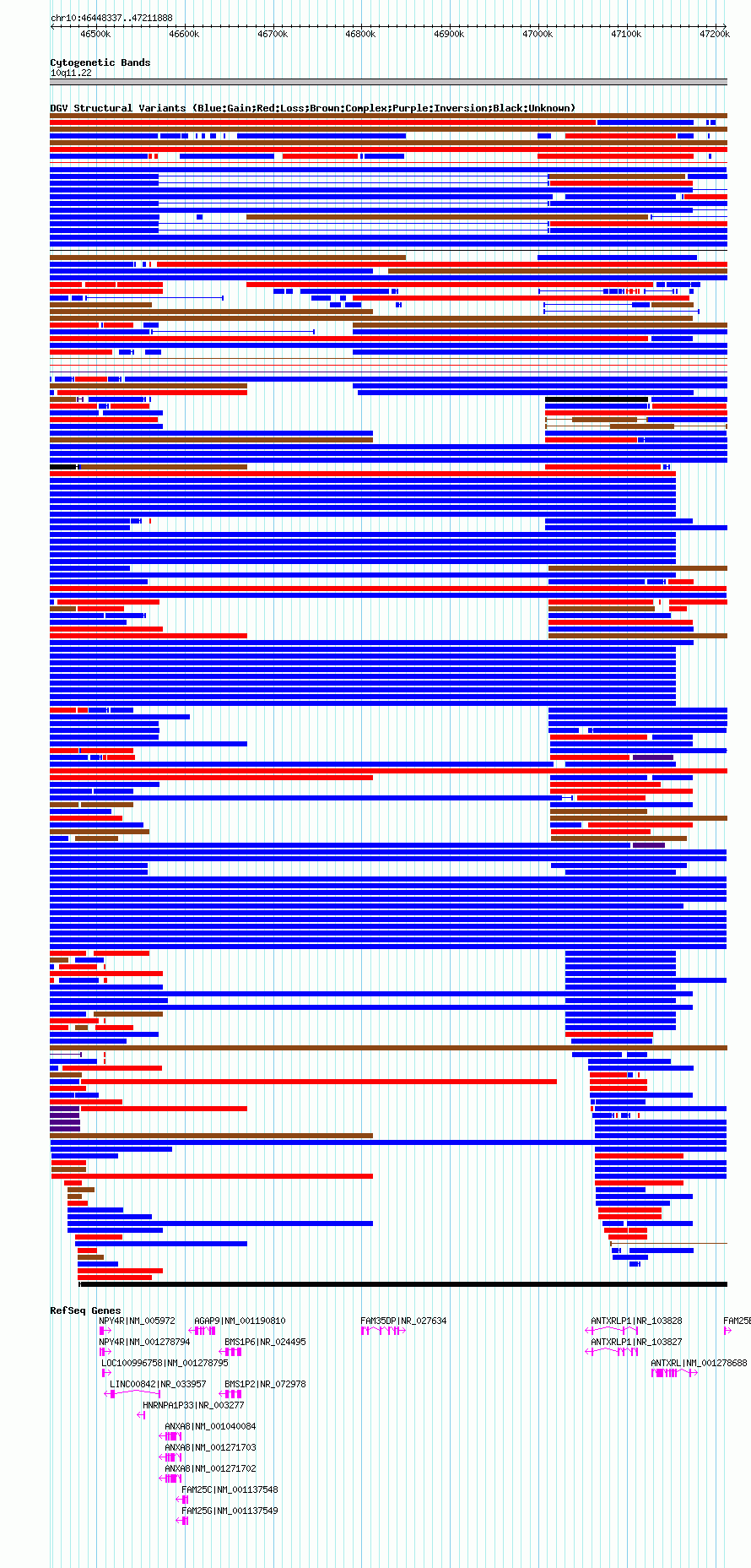 Variant DetailsVariant: nsv550725| Internal ID | 16338134 | | Landmark | | | Location Information | | | Cytoband | 10q11.22 | | Allele length | | Assembly | Allele length | | hg19 | 713552 | | hg18 | 763552 |