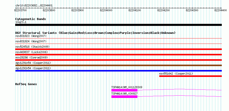 Variant DetailsVariant: nsv551638| Internal ID | 16339047 | | Landmark | | | Location Information | | | Cytoband | 10q23.1 | | Allele length | | Assembly | Allele length | | hg38 | 720 | | hg19 | 720 | | hg18 | 720 |